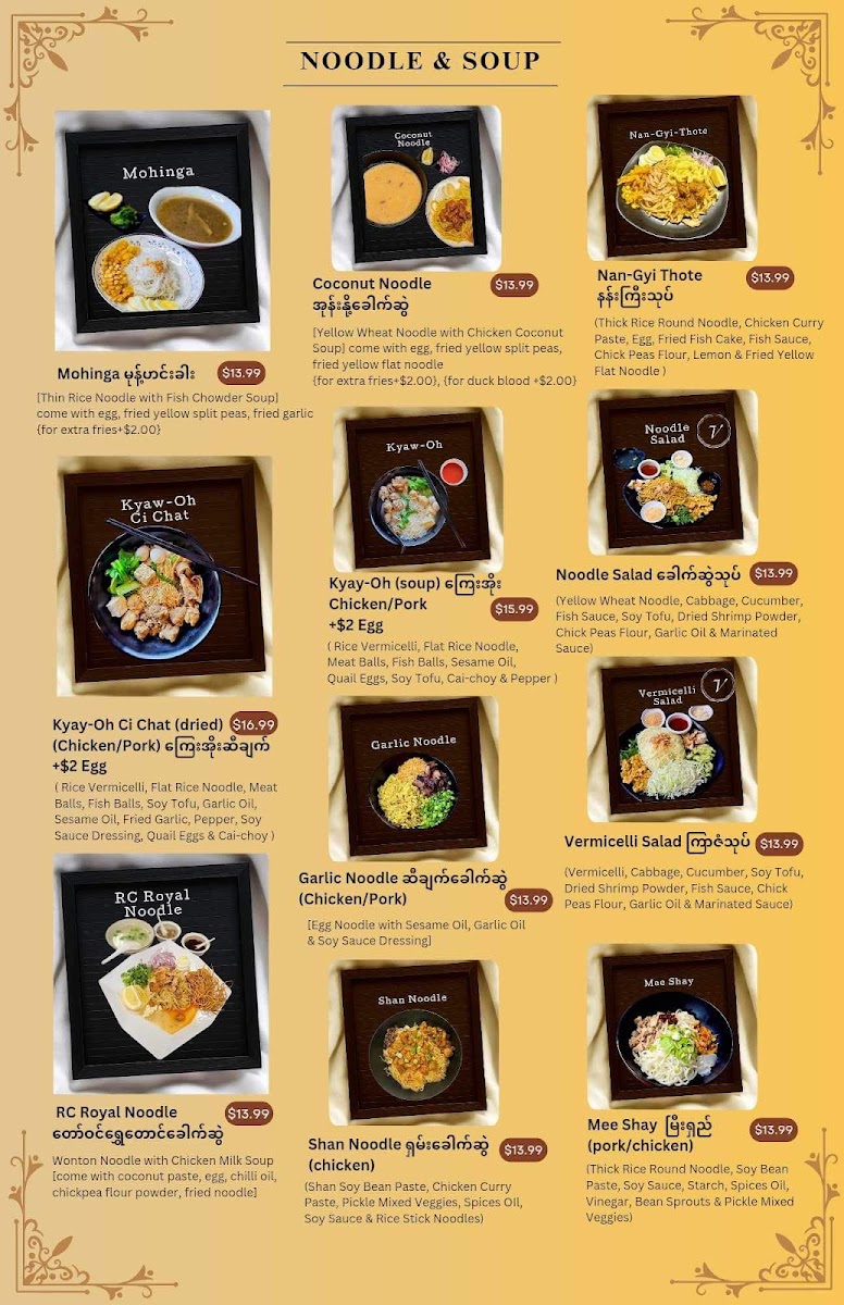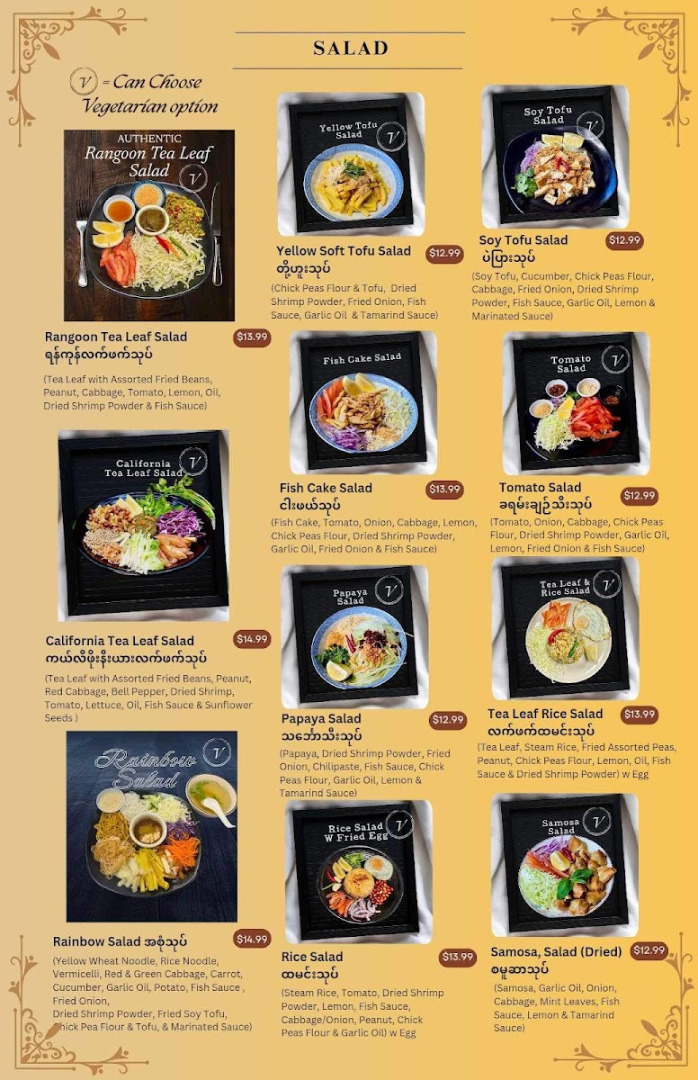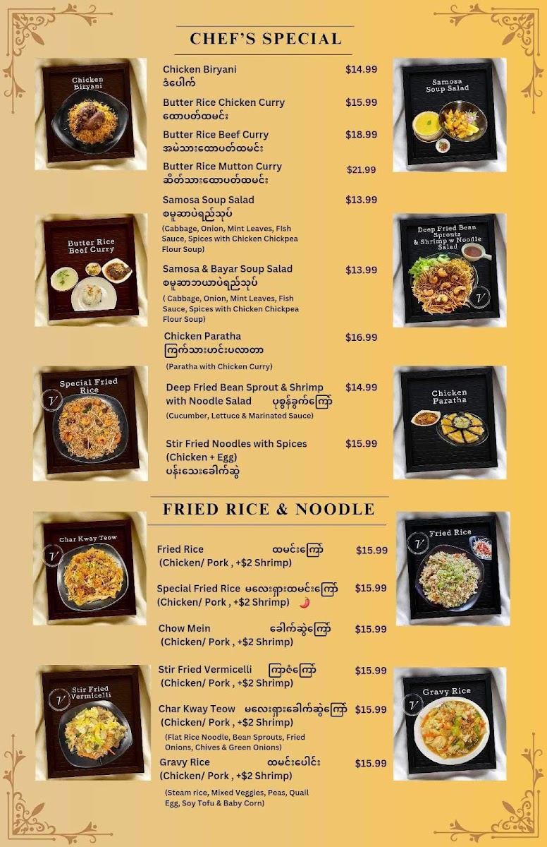 With reviews highlighting their extensive menu and attention to flavor, it’s no wonder that diners keep coming back. Customer Russ Lacuata exclaimed, “First time trying Burmese food and will not be the last,” and Dewi Aldrich celebrated the variety of dishes, saying, “Everything was delicious!” These affirmations of quality and excitement encapsulate the restaurant's mission—to provide an authentic and satisfying dining experience that encourages exploration and discovery.